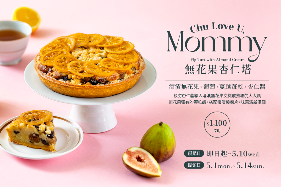 「無花果杏仁塔」軟甜杏仁醬綴入酒漬無花果交織而成熟韻的大人風味! 口感綿密醇厚、無花果獨有的顆粒感,搭配蜜漬檸檬片,味蕾既清新又滿是溫潤。